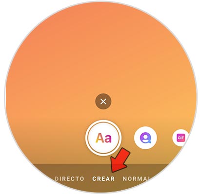 Normalmente las historias de Instagram se abren por defecto en la opción “Normal”. Desliza hacia la izquierda la barra inferior hasta llegar a la opción “Crear”. Puedes variar el color desde el círculo inferior izquierdo.