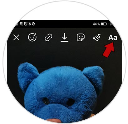 Lo primero que debes hacer es subir la foto o vídeo que quieres poner en tu Instagram Stories. Una vez que la tengas, selecciona el icono de Aa, situado en la parte superior derecha.