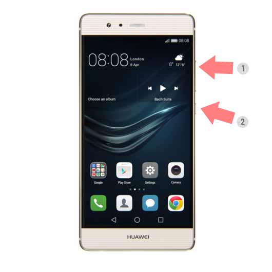 Teniendo el móvil Huawei P9 apagado realiza esta combinación de botones: