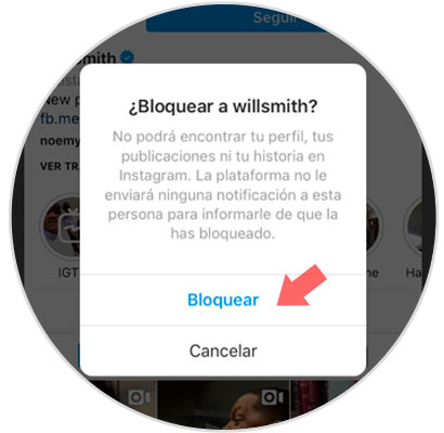 Se abrirá una ventana emergente en la pantalla, pulsa en la opción “Bloquear” que aparece en primer lugar destacada en color rojo.