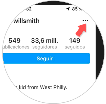Entra en el perfil del usuario al que quieres ocultar tu actividad, y pulsa en el icono de 3 puntos dispuestos de forma horizontal que vas a encontrar en la esquina superior derecha de la pantalla.