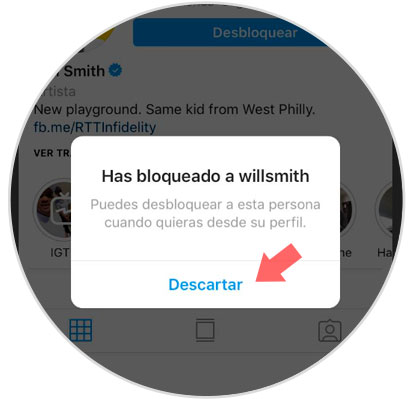 Aparecerá una ventana emergente. Pulsa en “Desbloquear” para confirmar la acción. Ahora, para acabar, pulsa “Descartar” y habrás desbloqueado a esta persona en concreto, por lo que ahora va a poder volver a ver tu actividad de nuevo en Instagram.