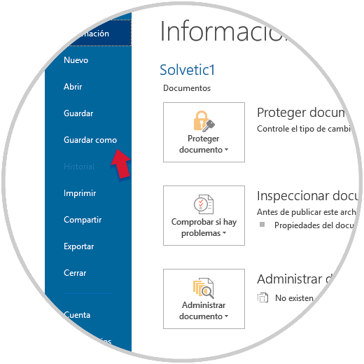 El primer paso para guardar un archivo de Word a PDF es ir al menú “Archivo” y allí seleccionar la línea “Guardar como”: