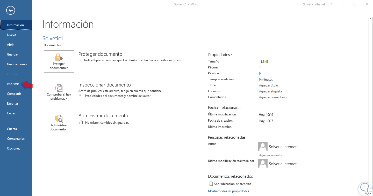 Finalmente, la tercera opción disponible es imprimir el archivo directamente a PDF, para esto vamos al menú “Archivo” y allí seleccionamos la opción “Imprimir”: