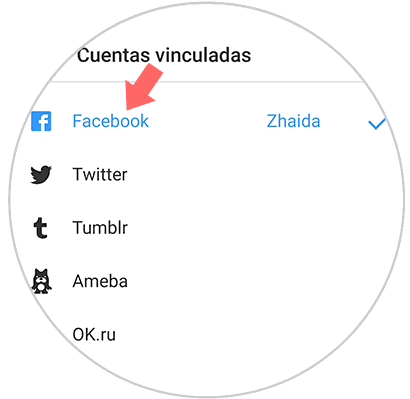 Ahora debes vincular tu cuenta con Facebook seleccionando esta red social.