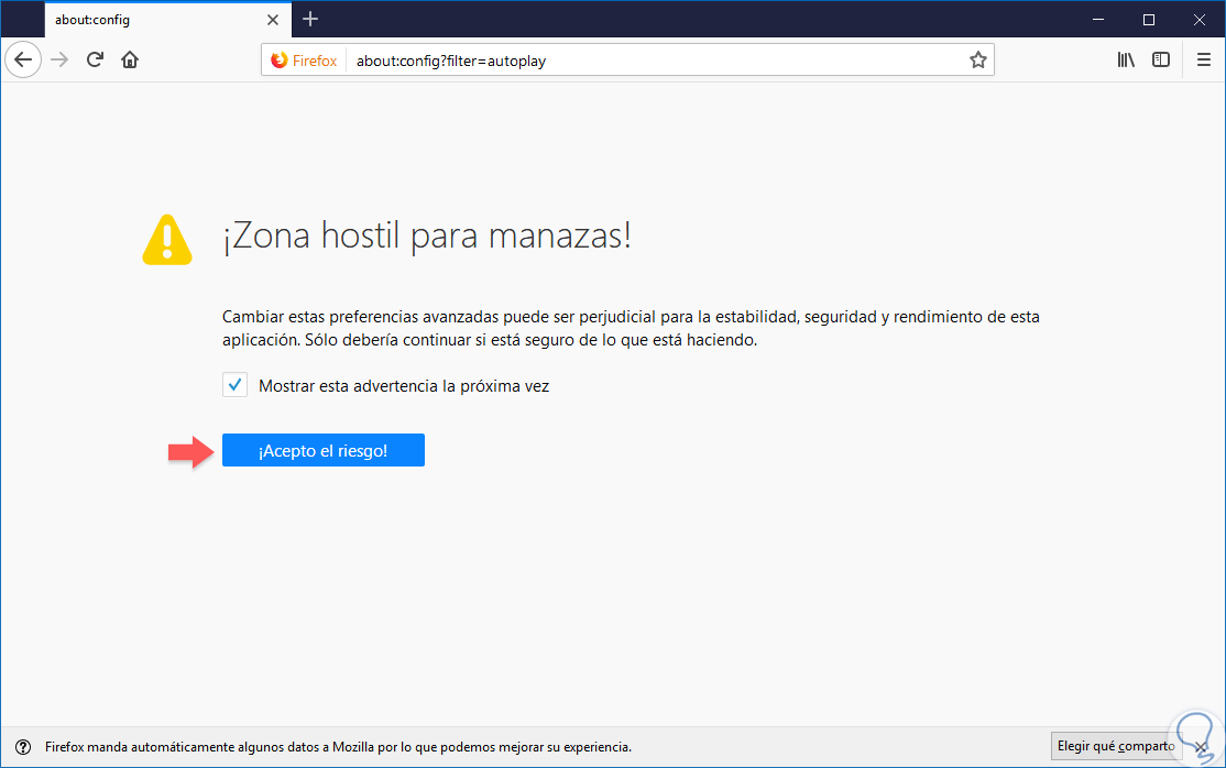 No encontraremos un botón que nos desactive este inicio automático así que tendremos que entrar en las opciones ocultas para hacerlo. Por eso veremos cómo deshabilitar la opción de reproducción automática en vídeos desde Firefox.