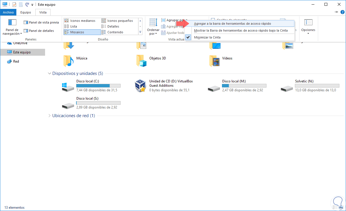 Con estos pasos podremos configurar la forma de usar la barra de herramientas en el explorador de archivos de Windows 10.