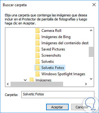 En este caso seleccionamos “Fotografías” y automáticamente se tomarán los elementos que tengamos en el directorio Imágenes: