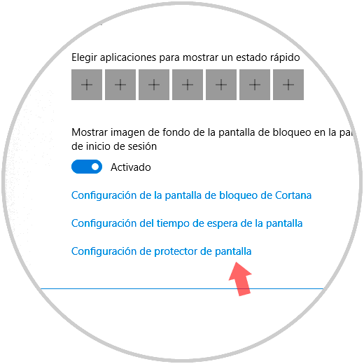 En la parte inferior pulsamos en la línea “Configuración de protector de pantalla” y en la ventana desplegada contamos con las siguientes opciones en el campo “Protector de pantalla”: