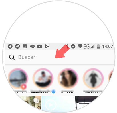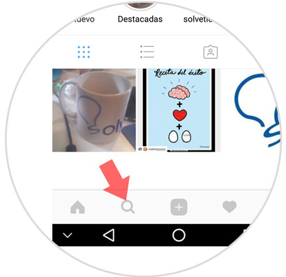 Entra en la aplicación de Instagram desde tu teléfono móvil y una vez dentro pulsa en el icono la lupa situado en la barra inferior de tu muro de Instagram.