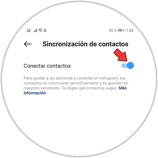 Ahora debes activar la pestaña que pone "conectar contactos" para que quede activada.