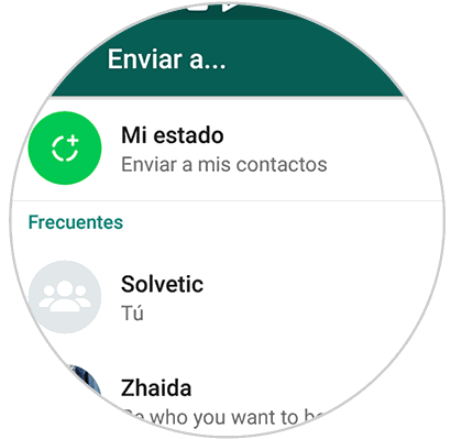 Veremos que se abre la App de WhatsApp para que seleccionemos el contacto al que queremos mandar este mensaje.