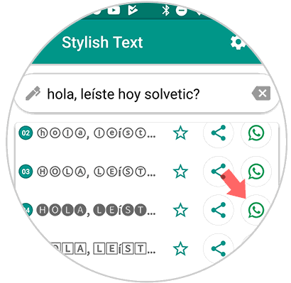 Un vez que hemos escrito nuestro mensaje, tenemos que seleccionar el estilo que queremos utilizar y hacer clic sobre el icono de WhatsApp situado en el lateral.