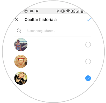 Finalmente pulsa sobre la persona o personas a las que quieres ocultar la historia.