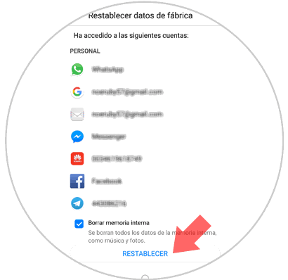 Verás un listado con toda la información que quedará eliminada de forma definitiva de tu dispositivo. Pulsa en el botón “Restablecer” situado en la parte inferior de la pantalla.