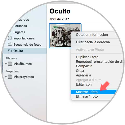 Para restablecer de nuevo las fotos ocultas, basta con dar clic derecho sobre ella y seleccionar la opción “Mostrar 1 foto”. Esto hará que la foto sea visible de nuevo.