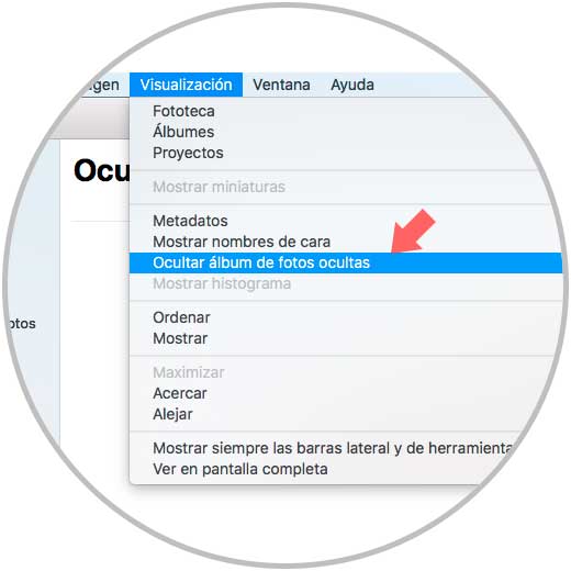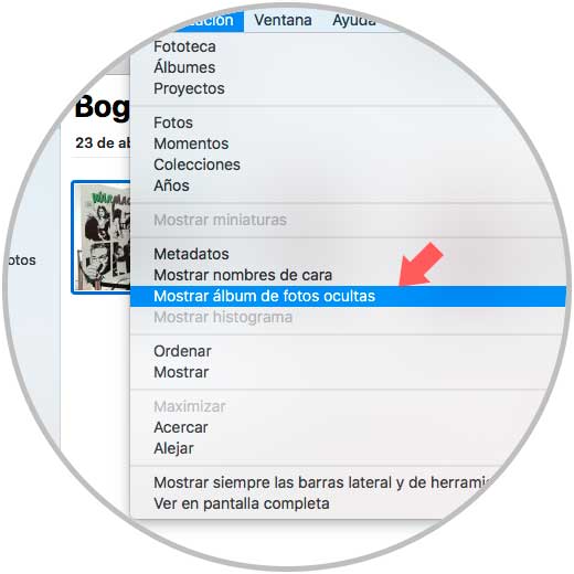 Para tener acceso a las imágenes que hemos ocultado en macOS High Sierra, debemos ir al menú “Visualización” y allí seleccionar la línea “Mostrar álbum de fotos ocultas”: