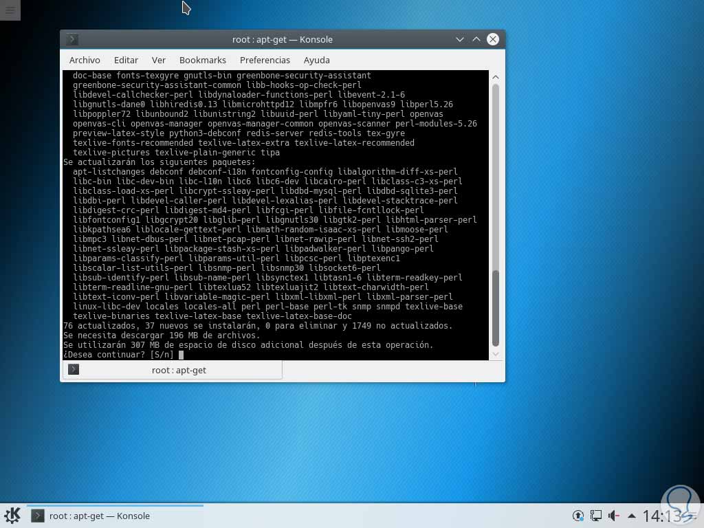 Allí también ingresaremos la letra S para confirmar la instalación de esos paquetes. Durante el proceso de instalación veremos el siguiente mensaje: