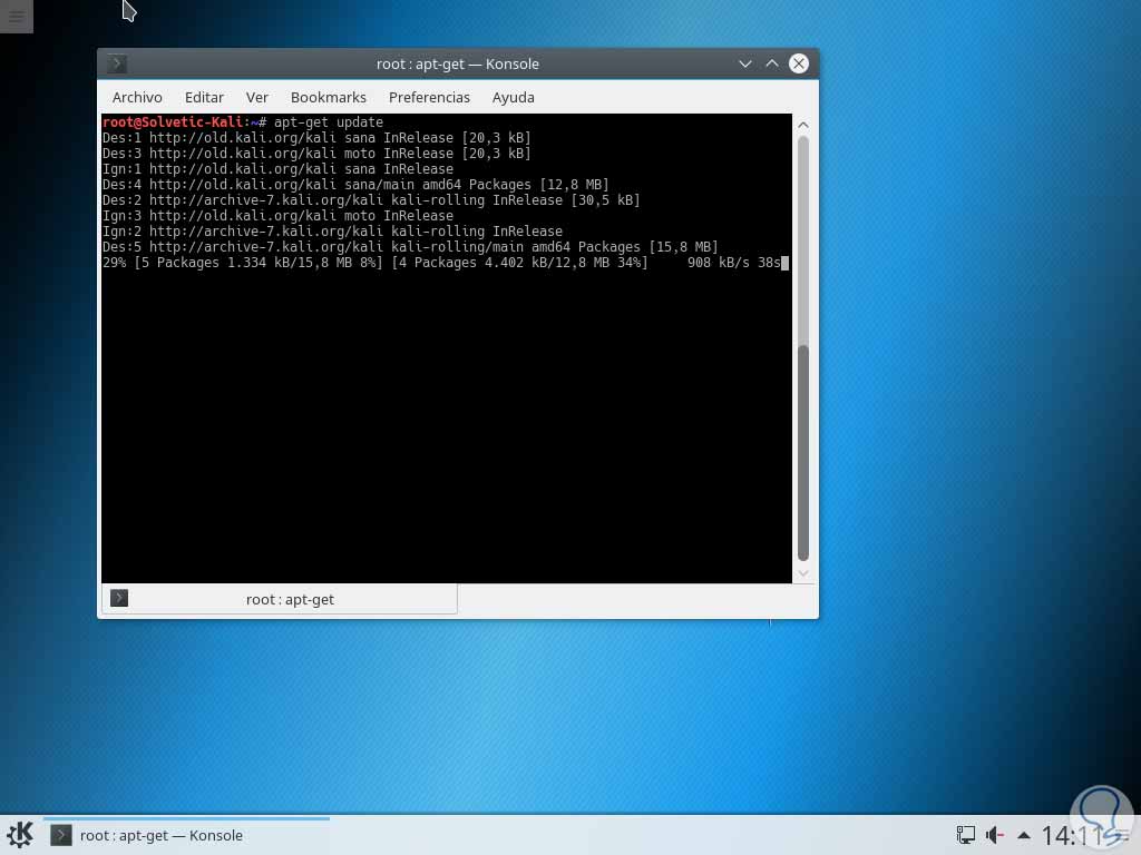 deb http://http.kali.org/kali kali-rolling main contrib non-free deb http://old.kali.org/kali sana main non-free contrib deb http://old.kali.org/kali moto main non-free contribGuardamos los cambios y ejecutamos apt-get update para actualizar el sistema y de este modo poder descargar e instalar OpenVAS.