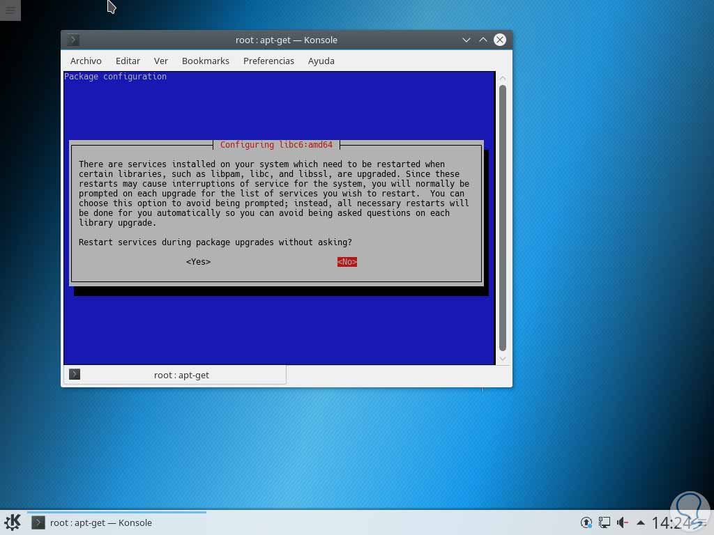 Allí podremos confirmar o no que los servicios afectados sean reiniciados automáticamente o no. De este modo solo falta esperar alrededor de 10 minutos para que el proceso concluya.