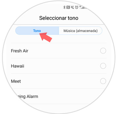 Si quieres seleccionar un tono de los de llamada aparecerá la lista de tonos, que podrás ir escuchando y finalmente selecciona el que más te guste como tono de alarma.