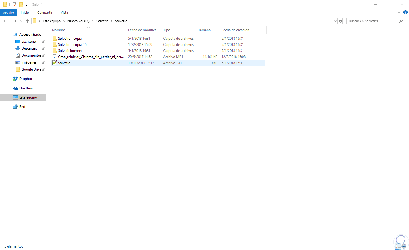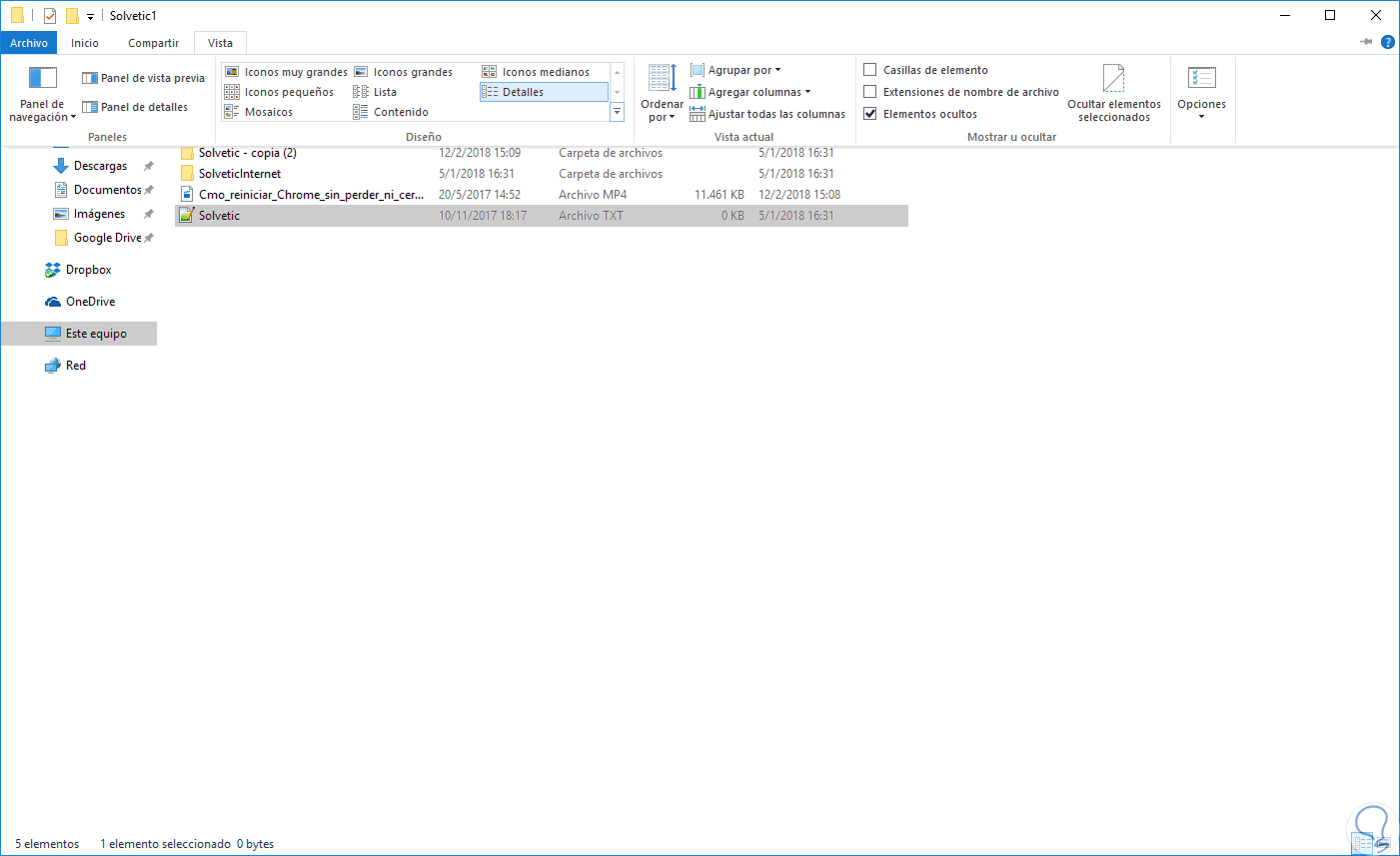 Para conocer los detalles de todos los archivos en una carpeta, debemos modificar su vista a “Detalles”, recordemos que el explorador nos ofrece una serie de opciones como