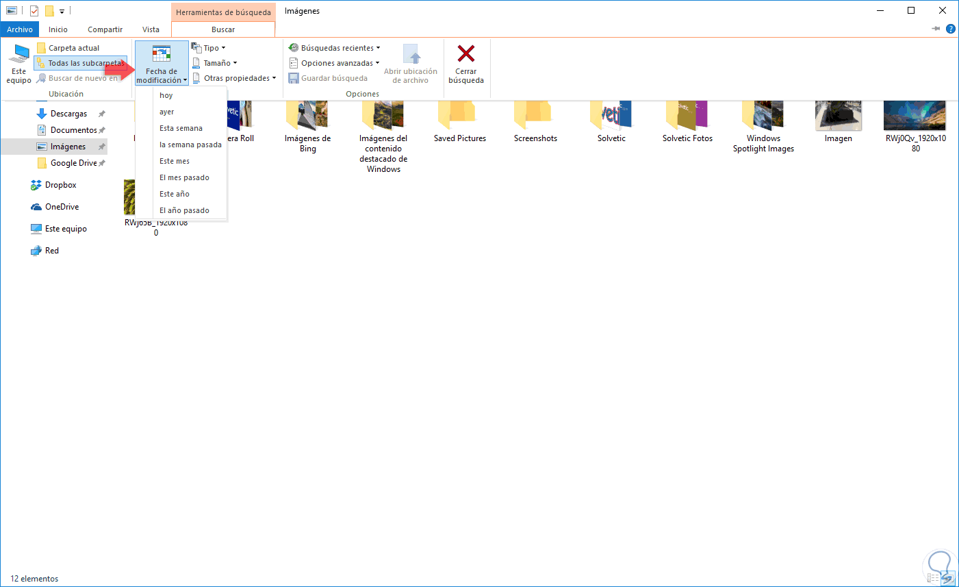 Allí pulsaremos sobre la opción “Fecha de modificación” ubicada en el grupo “Refinar” y veremos múltiples opciones como: