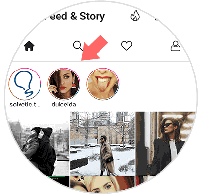 Ahora que ya estamos registrados en la App, veremos en la parte superior los contactos que tenemos y que disponen de historias 24 horas en la red social en ese momento.