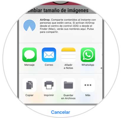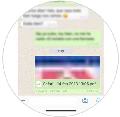 Ahora debemos seleccionar desde que aplicación queremos compartir este PDF que hemos creado. En este caso seleccionamos WhatsApp como App para enviarlo.