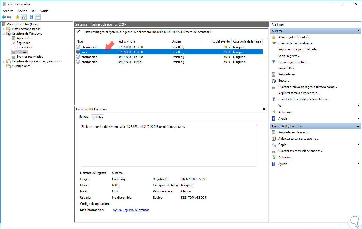 Como podemos ver, el visor de eventos es una utilidad dinámica para ejecutar este tipo de análisis de forma detallada en Windows 10.