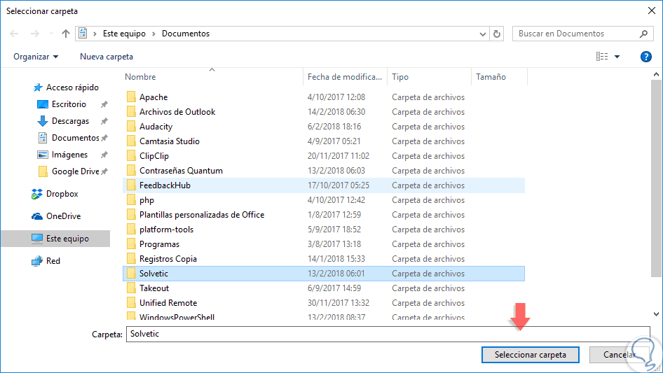 Pulsamos en “Seleccionar carpeta” y veremos que esta se añade de forma correcta: