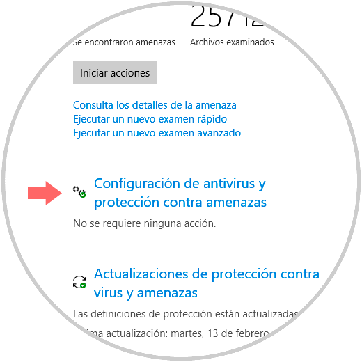 Allí pulsamos en la sección “Protección antivirus y contra amenazas” y allí veremos lo siguiente: