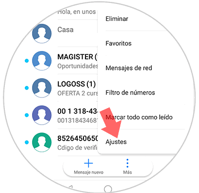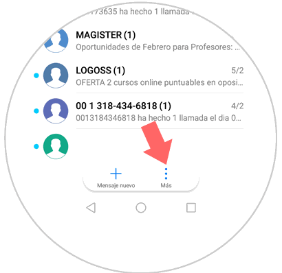 Ahora verás el listado de mensajes recibidos y en la parte inferior de la pantalla dos opciones. Pulsa la opción “Más” representada por tres puntos verticales.
