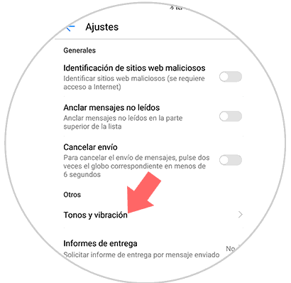 En la nueva pantalla y dentro de “Otros” verás la opción “Tonos y vibración”. Pulsa aquí.