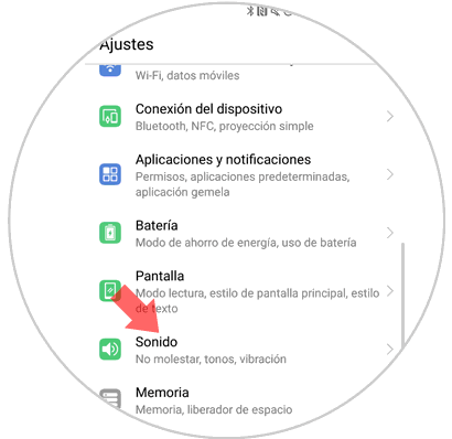En el menú de “Ajustes” desliza hacia abajo hasta el apartado “Sonido”. Pulsa aquí.