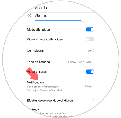 Aquí aparecerás en nueva pantalla en la que podrás configurar distintos aspectos del sonido de tu terminal. Desliza hasta que encuentres la opción “Notificación”. Pulsa sobre ella.