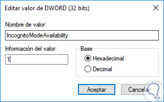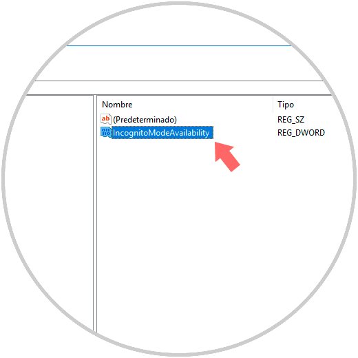 Este valor DWORD será llamado “IncógnitoModeAvailability”: