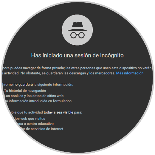 Al usar este modo incógnito, se deshabilitará el historial de navegación, las cookies y la memoria caché web de modo que se cuenta como una medida de protección, aunque podemos seguir siendo monitoreados por los administradores de red con las herramientas adecuadas.