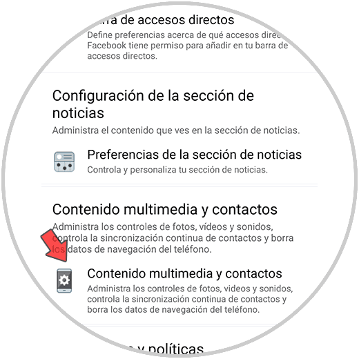 Lo siguiente que tienes que hacer es desplazarte hasta la sección de "Contenido multimedia y contactos" y acceder a este apartado.
