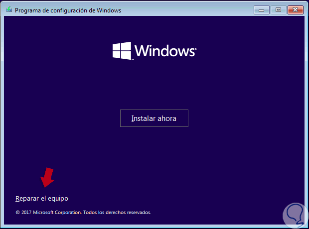 Allí debemos pulsar en la línea “Reparar el equipo” y esto nos redireccionara a la siguiente ventana: