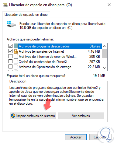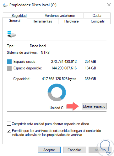 Pulsamos en el botón “Liberar espacio” y veremos la siguiente ventana: