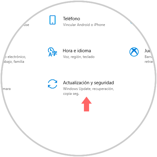 Allí pulsamos en la sección “Actualización y seguridad” y en la nueva ventana desplegada iremos a la sección “Recuperación”: