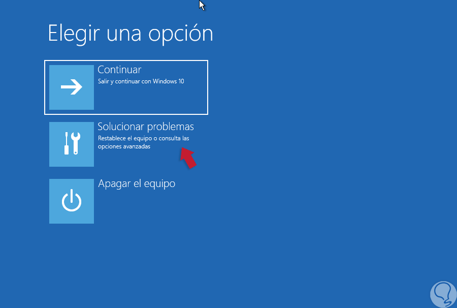 Pulsamos en la sección “Solucionar problemas” y veremos lo siguiente:
