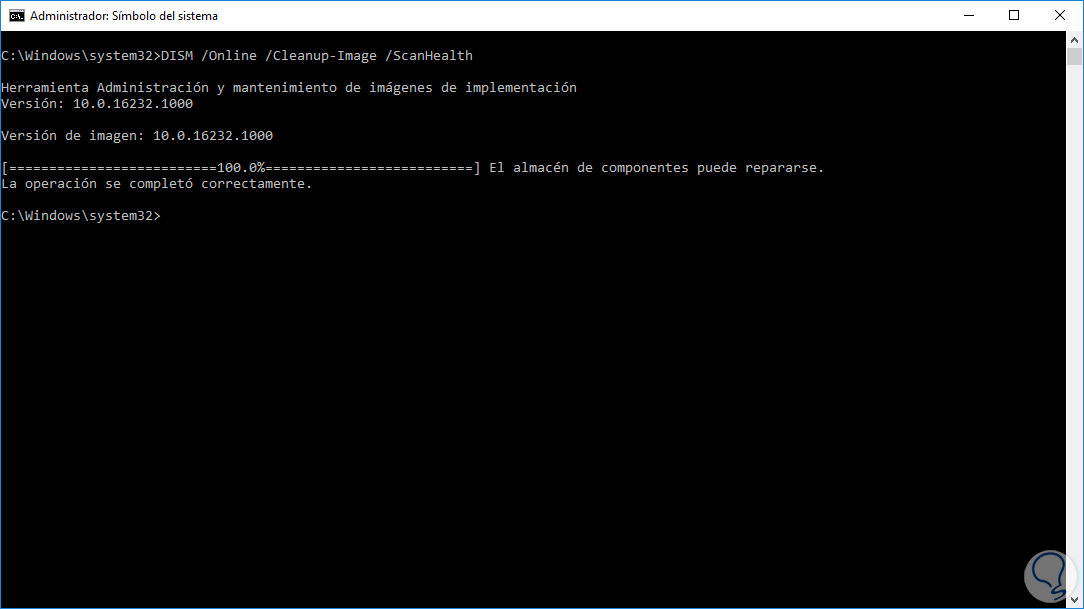 A continuación usaremos el comando DISM para poder corregir posibles errores que tengamos en el sistema y que nos esté afectando.
