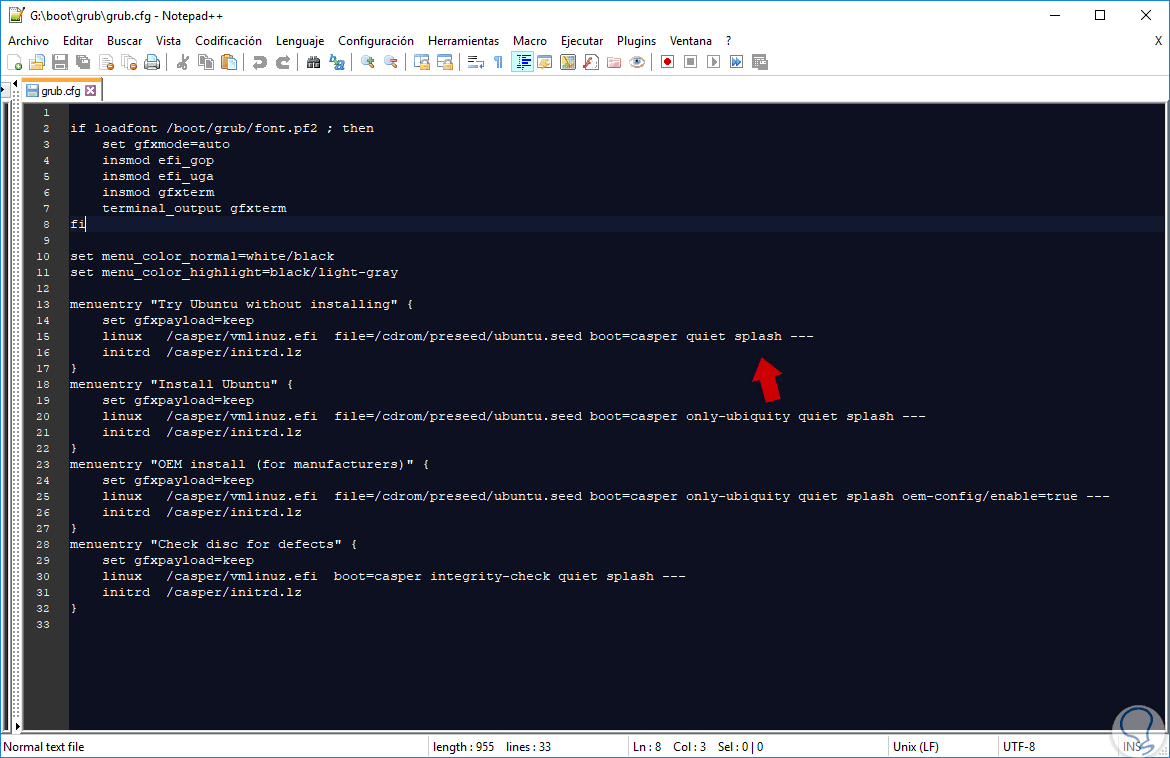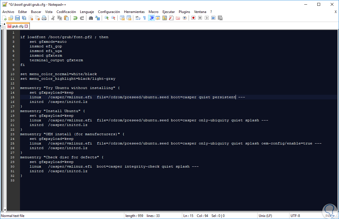 Abriremos este archivo .cfg con cualquier editor de texto y veremos lo siguiente: