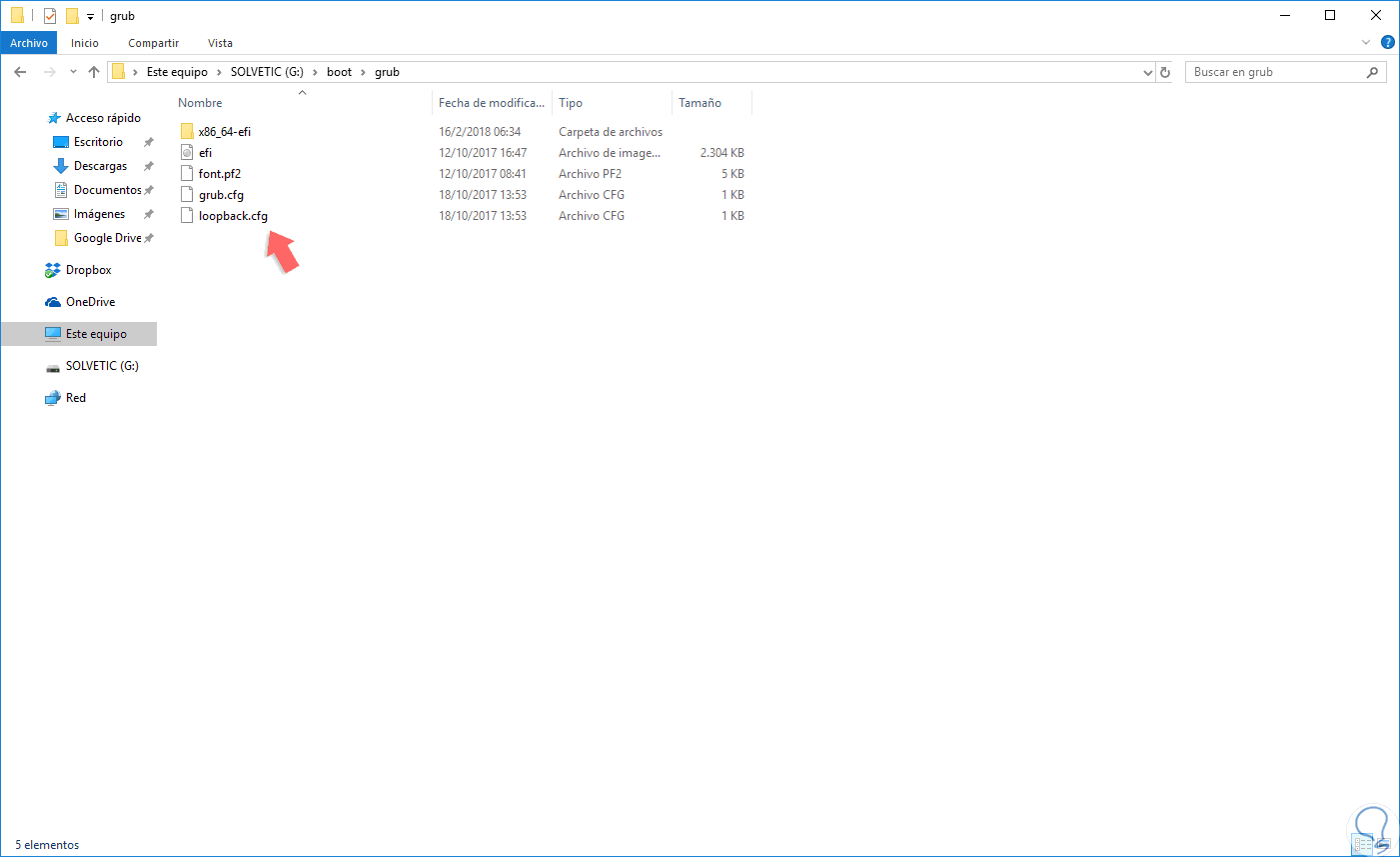 Ahora, accederemos a la unidad donde se ha creado el booteable de Ubuntu 20 y vamos al directorio “boot/grub”: