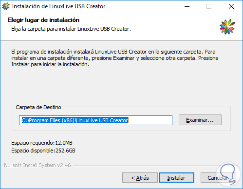 Aquí elegiremos la ruta de destino de guardado del programa:
