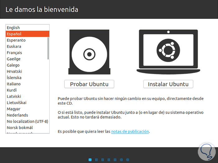 Allí podremos instalar Ubuntu en el disco local o simplemente probarlo para ver su desempeño antes de instalarlo.