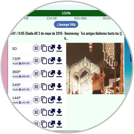 Con el vídeo abierto, debes pulsar sobre la extensión en la parte superior. Verás que se cargan diferentes opciones de descarga. Selecciona aquella que te interese.