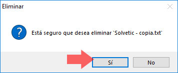 Allí recibiremos la siguiente advertencia. Pulsamos en "Si" para confirmar y de este modo hemos eliminado el archivo seleccionado del comprimido.